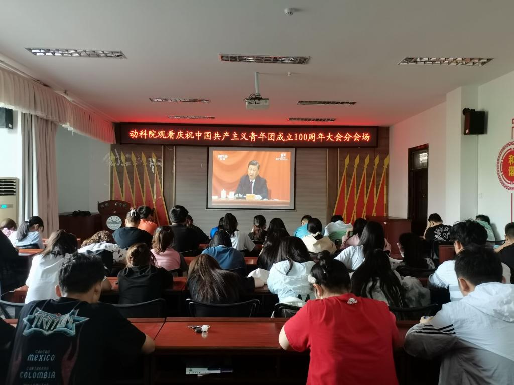 5月10日上午,动物科学与技术学院组织青年教师和学生代表在318会议室收看庆祝中国共产主义青年团成立100周年大会,学习习近平总书记重要讲话精神。