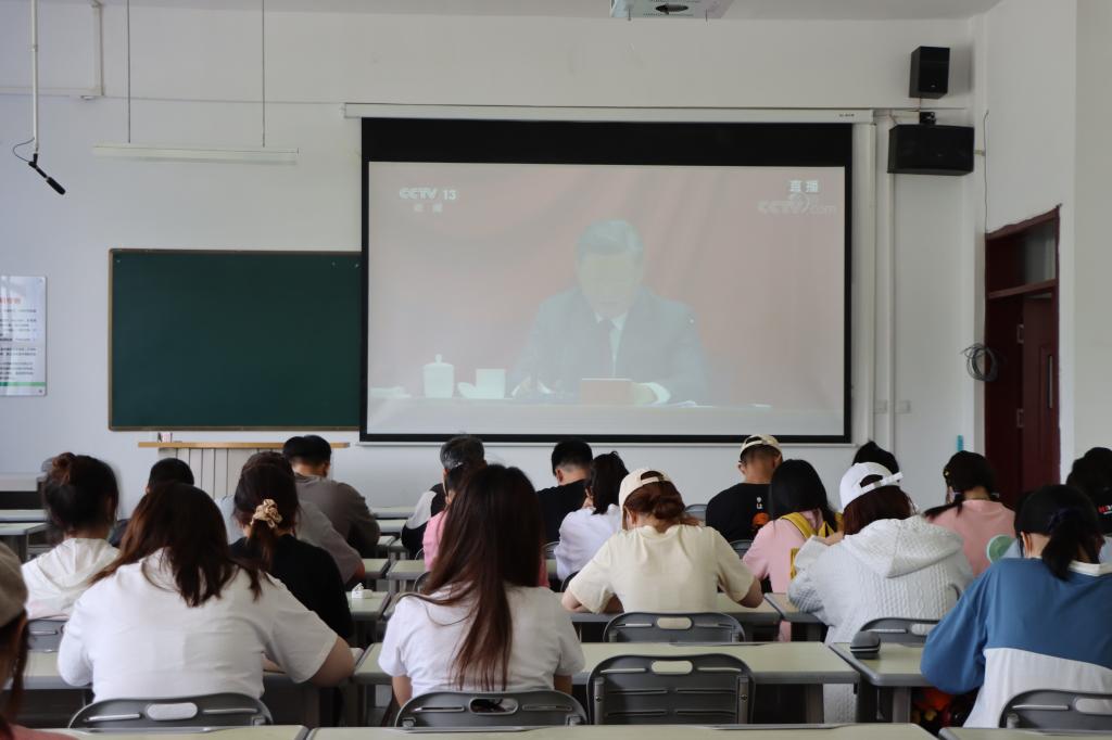5月10日上午,人文学院师生在新文科楼各教室、会议室收看习近平总书记在庆祝中国共产主义青年团成立100周年大会上重要讲话。
