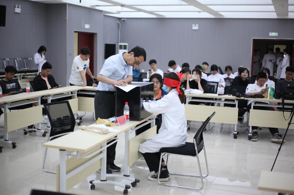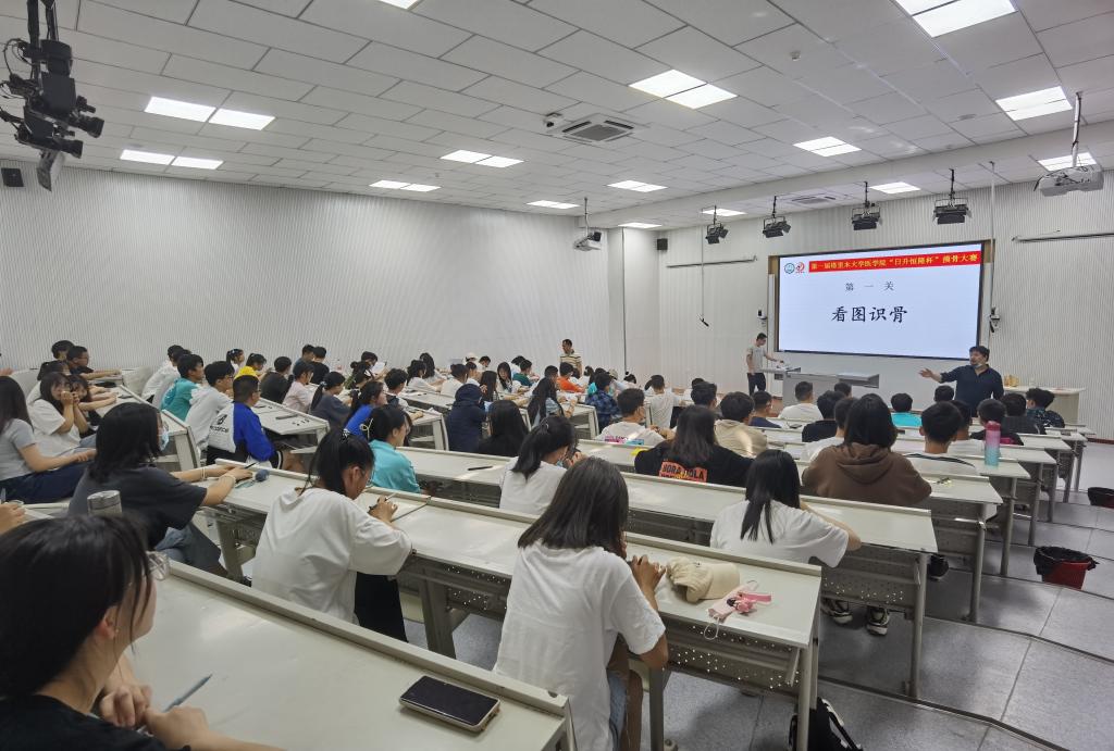 5月29日,医学院解剖课程组举办了第一届“日升恒隆杯”摸骨大赛。本次比赛分为三轮:第一轮“看图识骨”在综合楼阶教2进行,第二、三轮均在医科楼5楼报告厅进行。医学院首届临床医学本科专业全体在校生均参赛。