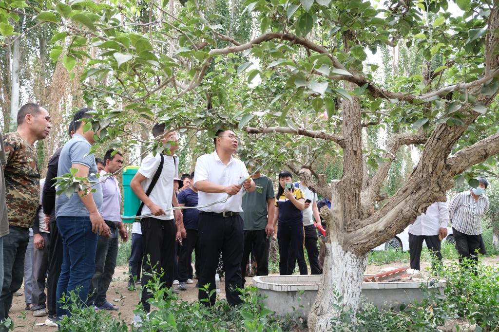 6月10日-11日,西北农林科技大学康振生院士团队骨干冯浩教授、徐亮胜教授一行来到beat365,与王兰教授团队一起到第一师11团、12团,第三师44团、53团开展果树腐烂病防控技术现场培训。