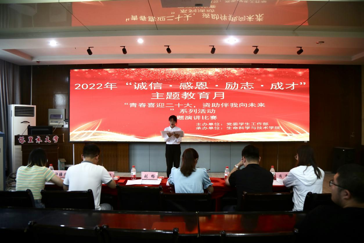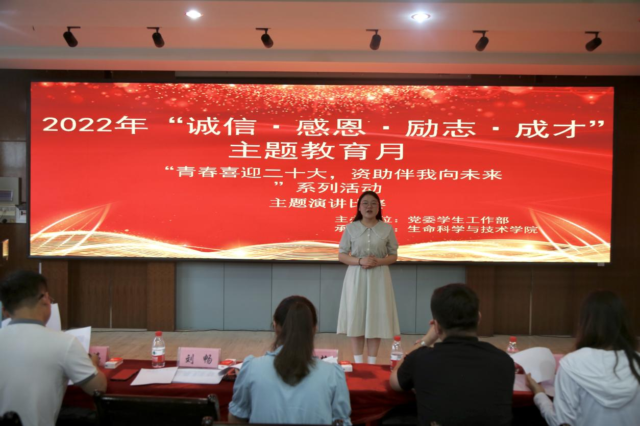 为加强学生思想政治教育,大力宣传国家资助政策和资助成效,强化学生知恩感恩、拥党爱国的情怀,培养学生勇于担当、坚持不懈、立志成才、传递爱心的优良品质,6月10日下午,党委学生工作部主办、生命科学与技术学院承办了“诚信 感恩 励志 成才”主题教育月系列活动之“青春喜迎二十大,资助伴我向未来”演讲比赛决赛。