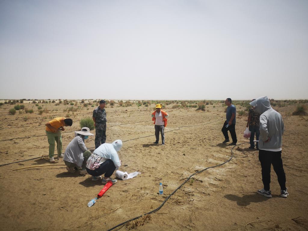在现场听取十一团农业发展中心、阿克苏天业节水有限公司关于四翅滨藜种植情况、存在问题的情况介绍后,团队结合具体生境条件,现场进行取样、分析,提出建议,积极为未来四翅滨藜产业发展出谋划策。