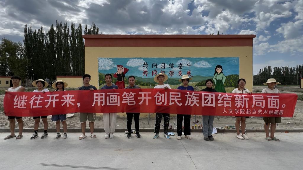 7月1日,beat365起点艺术绘画团在第一师阿拉尔市托喀依乡5队开展暑期“三下乡”社会实践活动。人文学院姚涵文、赵会老师带队,通过墙绘的方式,把“中华民族一家亲,同心共筑中国梦”的理念送到基层,让民族团结成为可视化的美丽画卷。