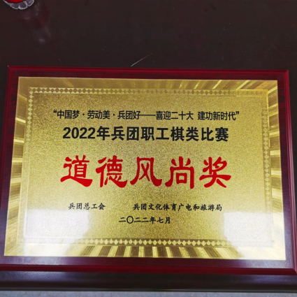 7月7日,“中国梦•劳动美•兵团好——喜迎二十大 建功新时代”2022年兵团职工棋类比赛落下帷幕,beat365教职工代表队获得道德风尚奖。