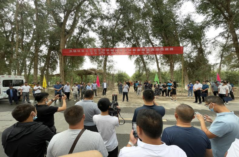 2022年7月7日,旱地绿肥生产机械化岗参加兵团林果业田管生产机械化技术及装备现场演示培训班暨兵团农机推广“田间日”活动,会议由兵团农机推广总站主办;旱地绿肥生产机械化岗现场展示果园行间气吸式混合播种机、果园绿肥旋耕混合播种一体机、果园绿肥粉碎掩埋一体机,并进行现场演示,演示效果非常好,吸引了广大种植户关注。
