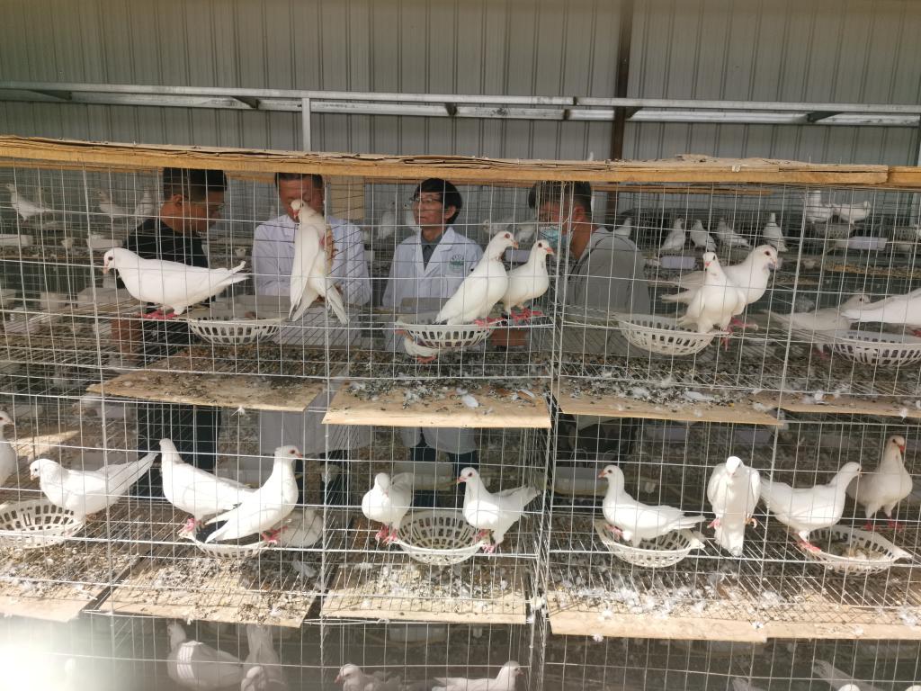 在“访惠聚”工作队的陪同下,服务团队一行冒着高温来到畜禽养殖合作社,实地查看了牛羊养殖和鸽子养殖情况,在牛羊养殖区域,针对养殖户反映养殖过程中遇到的问题,专家们就牛羊选种、繁育、疫病防控、饲喂和饲草料搭配等方面进行了现场指导;在鸽子养殖区域,胡建军教授就不同品种肉鸽的生长特性和生长过程需注意的细节与养殖人员开展了深入的交流,耐心地讲解鸽子饲养的关键喂养技术。