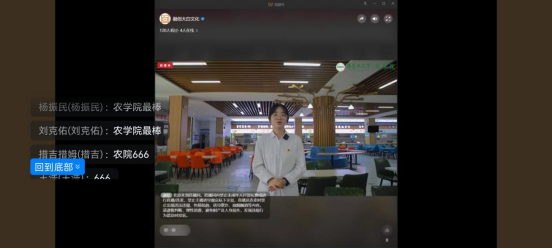 云游农学直播中,透过屏幕,新生们通过师兄师姐的引导,走进宿舍、食堂和学院实验基地,进一步深入感受塔大校园的美丽。