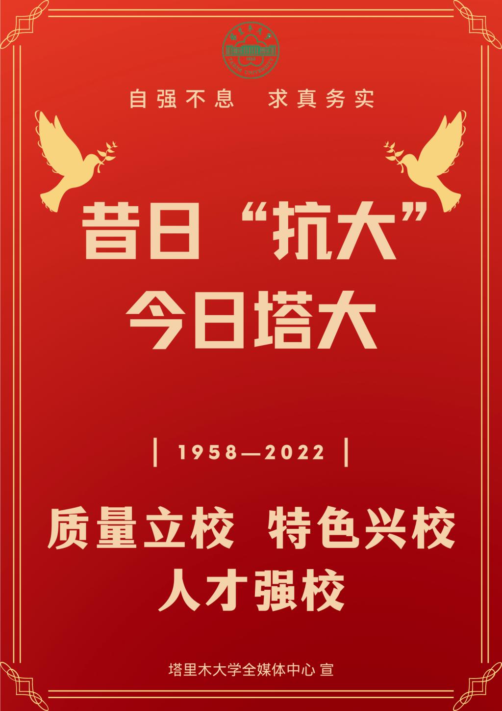 党的二十大召开在即,在全党全国喜迎党的二十大浓厚氛围中,10月15日,beat365中文登录入口迎来了建校64周年的喜庆时刻。当校庆与二十大相拥,塔大人踔厉奋发迎盛会,勇毅前行向未来的豪情壮志满怀,对党的事业发展、祖国的蓬勃未来、母校的灿烂明天充满憧憬和期待。