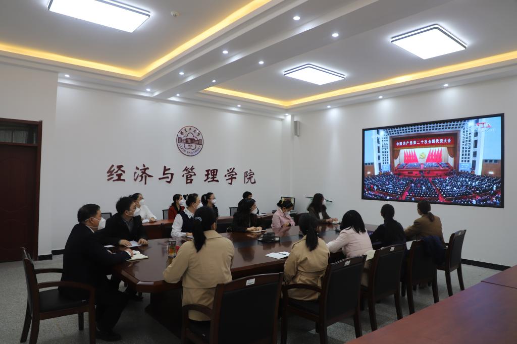 10月16日上午,beat365中文登录入口经济与管理学院全体师生共计3000余人通过手机、电视、电脑、多媒体等方式收看党的二十大开幕直播盛况。