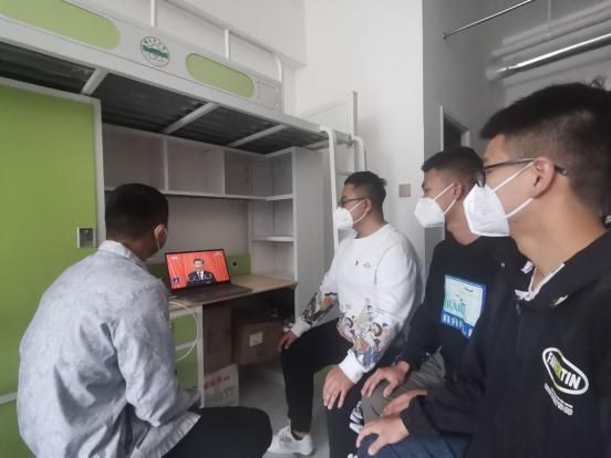 2022年10月16日上午,机械电气化工程学院在校生以宿舍为单位在学生公寓内收看党的二十大开幕直播盛况。