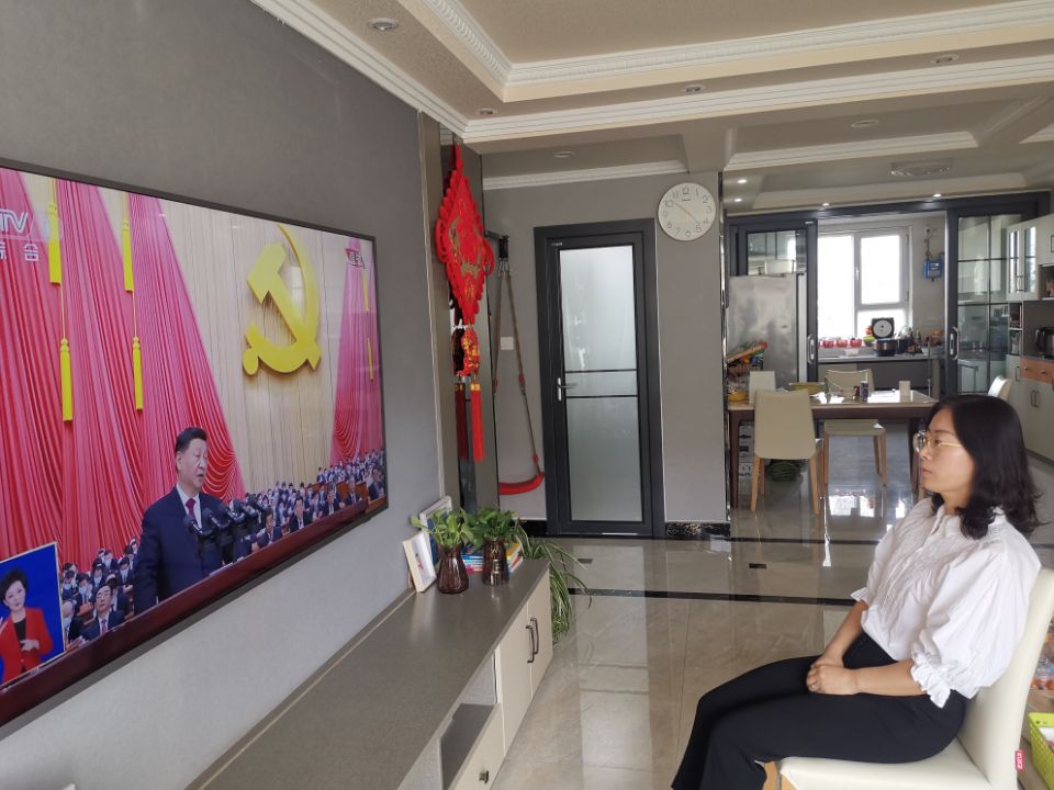 2022年10月16日上午,胡杨学院教师党员在家收看党的二十大开幕直播盛况。