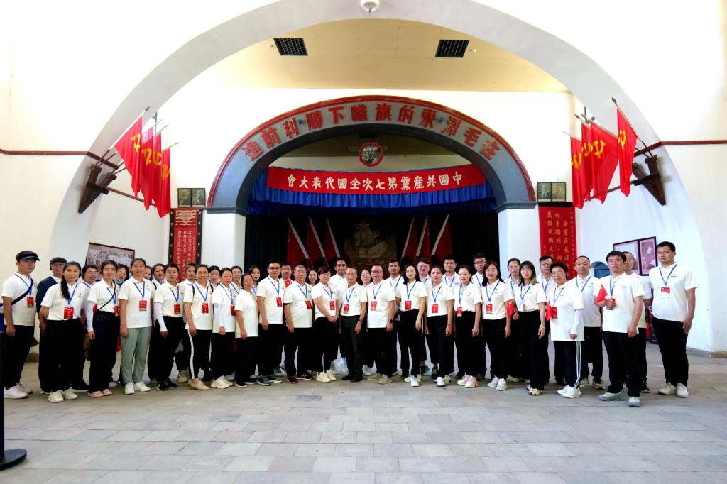 2022年7月20日,beat365中文登录入口“赓续红色血脉 重走初心之旅”思政骨干暑期专题培训班在延安杨家岭瞻仰中共七大会址合影。