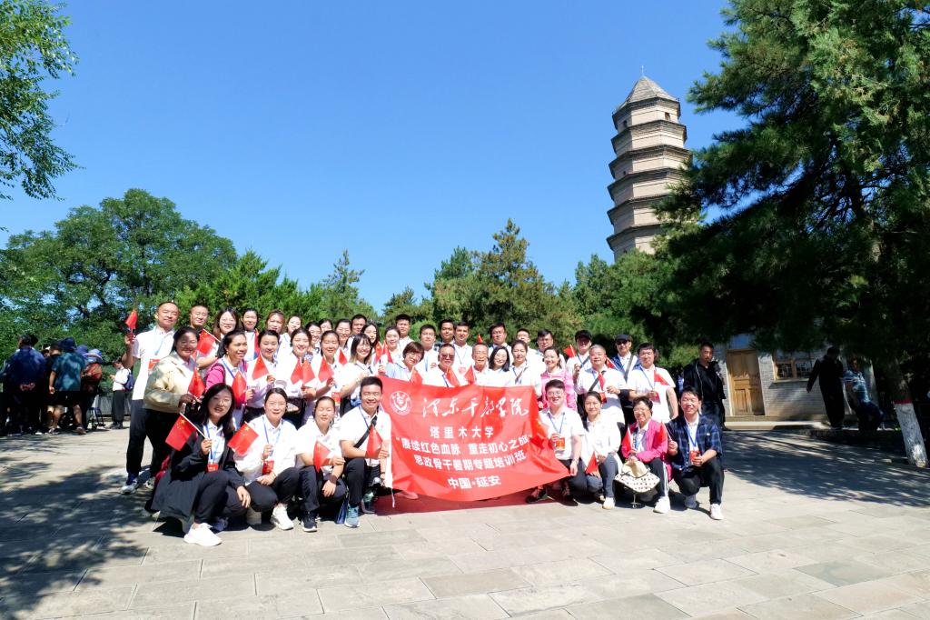 2022年7月20日,beat365中文登录入口“赓续红色血脉 重走初心之旅”思政骨干暑期专题培训班在延安宝塔山参观学习合影。