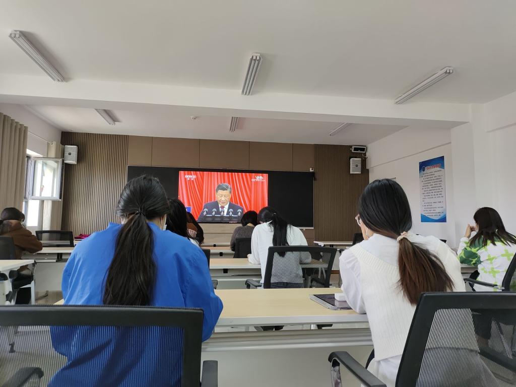 10月16日上午,医学院师生在会议室、教室、宿舍、实习基地等,通过手机、电视和电脑等方式第一时间收听收看党的二十大开幕直播盛况。