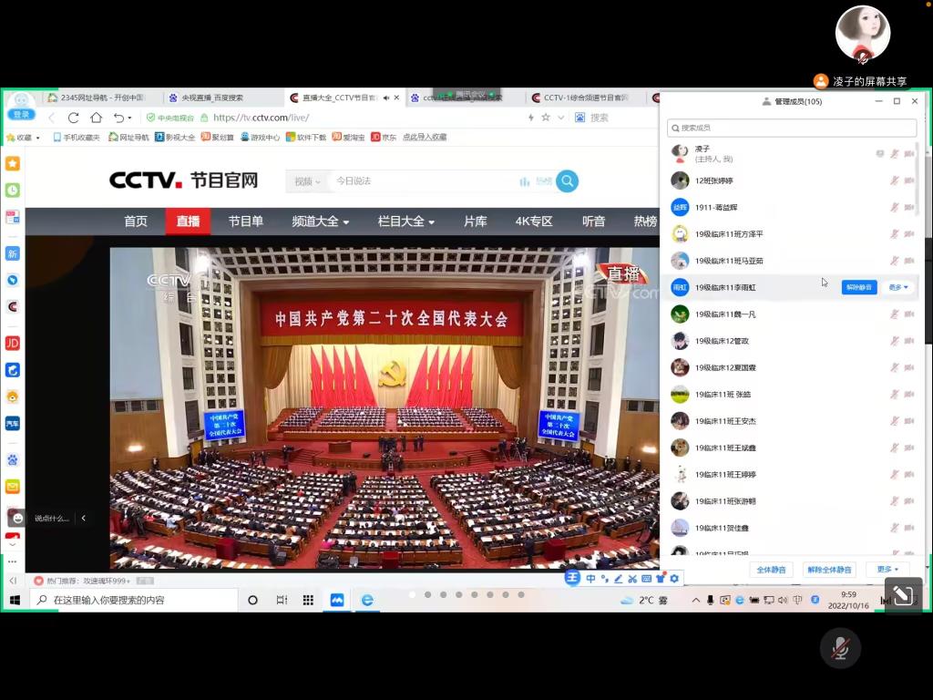 2022年10月16日上午,医学院学生集体线上收看党的二十大开幕直播盛况。