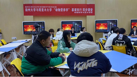 11月30日,beat365中文登录入口与扬州大学联合开展“慕课西行 同步课堂”教学活动,两校100余名师生跨越千里,同上《动物营养学》,携手共建云端课堂。两校学生以PPT汇报的形式分别讲述了用析因法计算动物生长肥育的能量需要、影响动物生长营养需要的因素、动物补偿生长机制的应用等内容。两校学生踊跃发言、积极分享、互问互答,课堂气氛活跃,取得了良好效果。(动科院讯 文/马闻璐 郭雪峰 摄/郭雪峰 林淼)