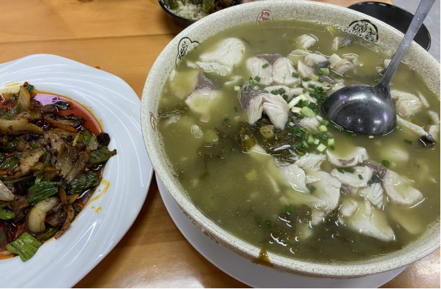 2022.1.2 和好朋友回家路上去阿克苏吃的酸菜鱼,量好大,没吃完。