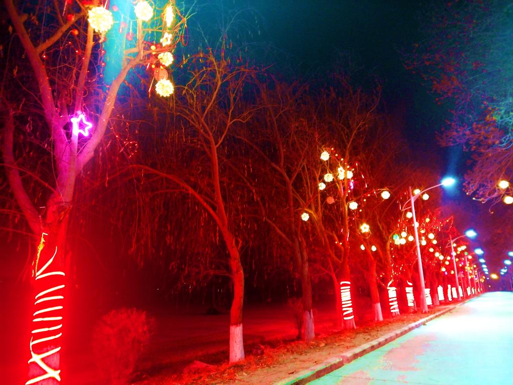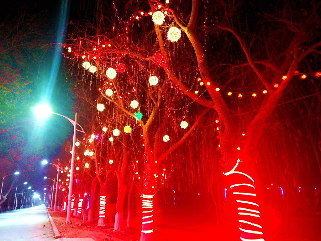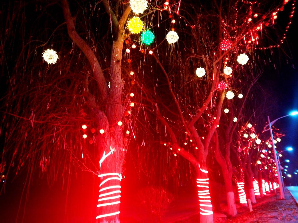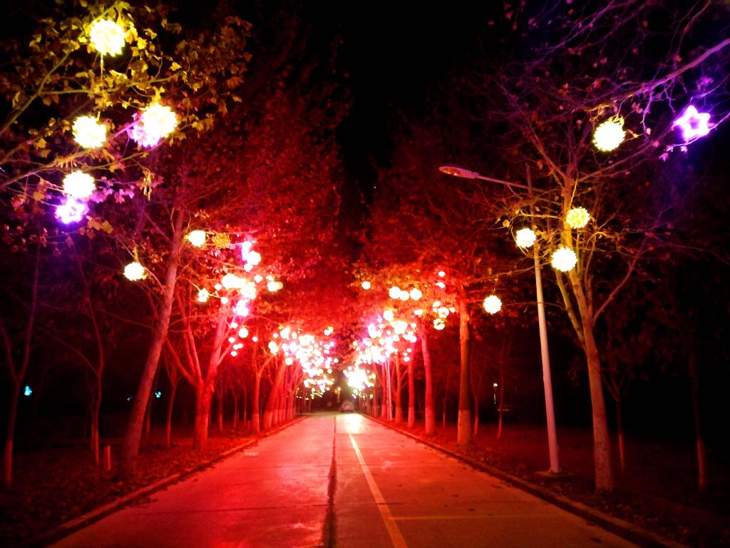 东区体育场到教工区的路上,已经准备好了节日的点缀,愿除夕之夜,你我相守,在这里享受美丽的长廊。