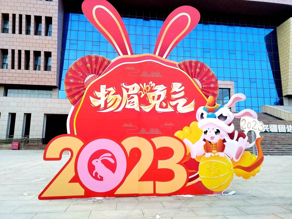 图书信息大楼北门口,春节主题背景墙已就位,期待大家解锁新春密码,定格全家幸福!