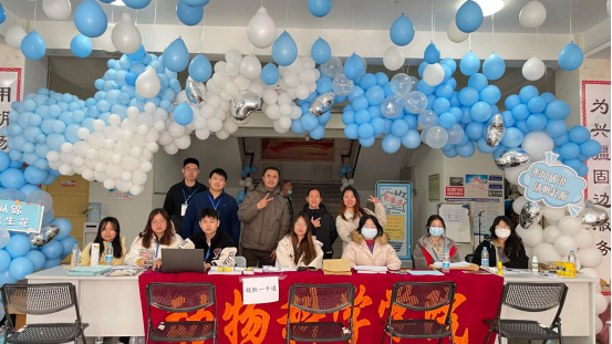 学院还在报到处悬挂迎新标语和横幅,热情欢迎新同学的到来。报到处不仅为新同学及家长准备了休息区,还设置了“第一面”拍照打卡墙,为大家定格第一张最美笑脸。
