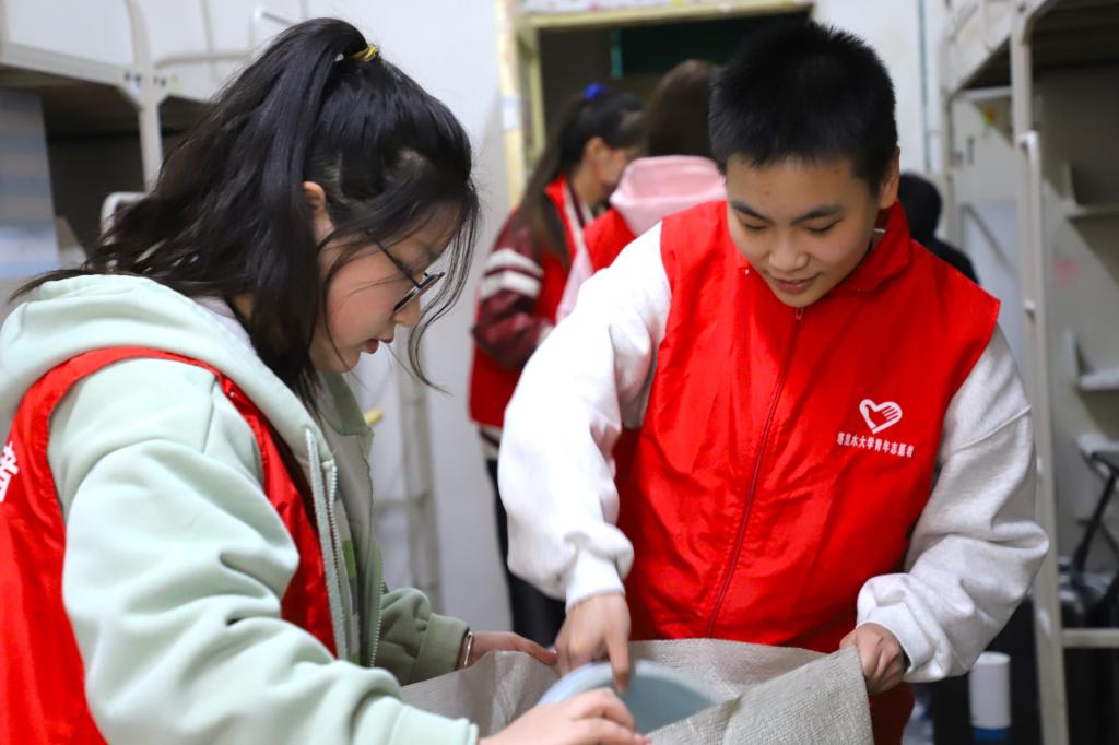 早在迎新大幕拉开前,学生志愿者对新生宿舍的垃圾和杂物进行彻底的清扫,排查安全隐患,对门锁、衣柜等损坏亲情况逐一核查并汇总上报,为新生到来创建一个干净整洁的生活环境,营造温馨舒适的居住氛围。