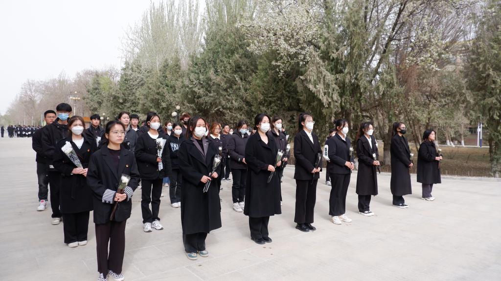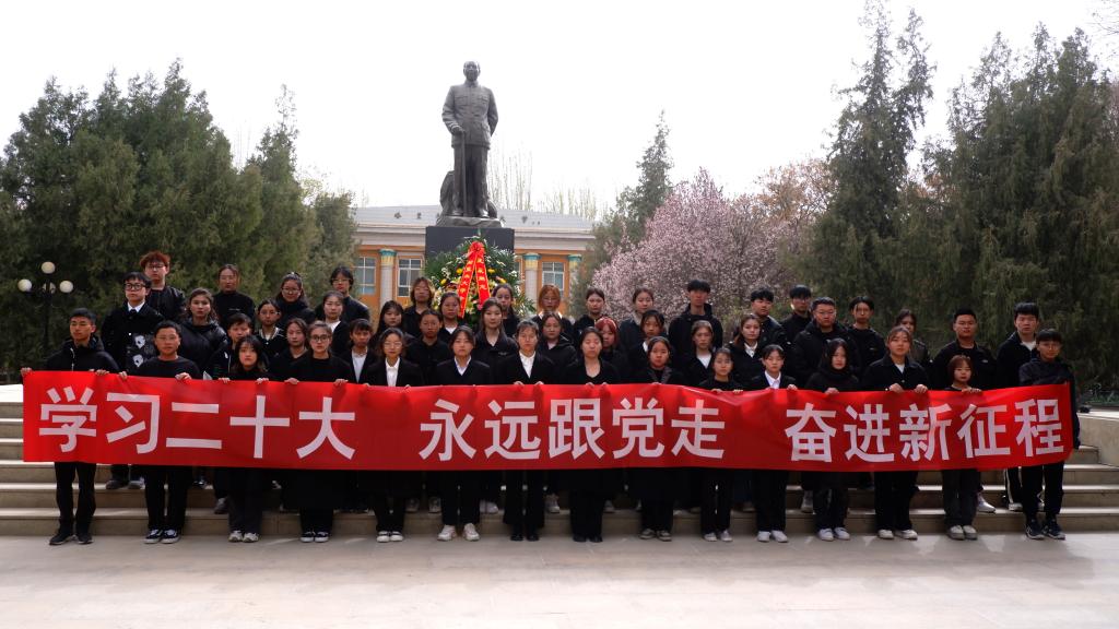 缅怀革命先烈,弘扬红色精神,4月5日上午,人文学院在红色文化广场开展清明祭英烈活动,向王震将军铜像献花,学院全体团干部和入团积极分子参加。