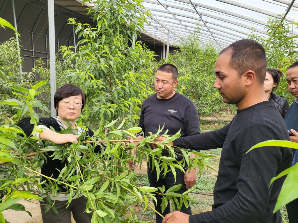 专家团队在设施鲜食枣、设施桃等种植基地现场仔细查看了园区建设情况和枣、桃、杏的生长状况,与园区管理人员进行交谈,了解设施大棚的日常管理情况。吴翠云教授从设施枣嫁接、抹芽、水肥管理,设施桃整形修剪及果实品质提升技术、新植桃、杏的定干管理等进行了指导,为大家解疑释惑。