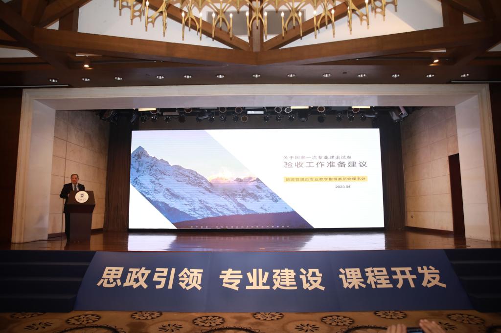 教育部高校旅游管理类专业教学指导委员会秘书长、云南大学工商管理与旅游管理学院赵书虹教授总结了旅游管理类国家一流本科专业建设的成果和特色,各高校要对照教育部一流本科专业建设要求,以面向未来、适应需求、引领发展、保障有力为目标,进一步加强高水平本科教育,为旅游管理类专业的建设发展提供良好的示范和借鉴。
