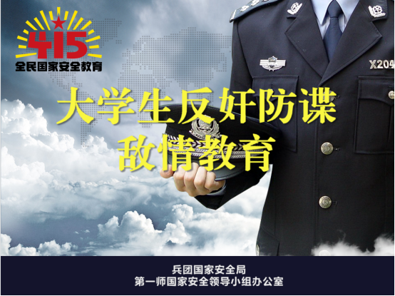 2023年4月15日是我国第8个“全民国家安全教育日”。为进一步增强师生反间谍能力,切实提升师生国家安全意识和素养,4月12日下午,党委保卫部、党委学生工作部联合开展“4·15”万人同上一堂课—国家安全教育专题讲座。兵团国家安全局袁警官应邀为师生作了大学生反奸防谍敌情教育专题讲座。