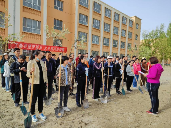 4月14日上午,学校工会在学校西区树林带组织开展“工会共建劳模林、义务植树美校园”植树活动,校工会主席张燕飞、各级劳模、校工会委员、女职工委员、各基层工会干部、教职工代表约40人参加了活动。(校工会讯文/原小梅 吴延叙 摄/原小梅)