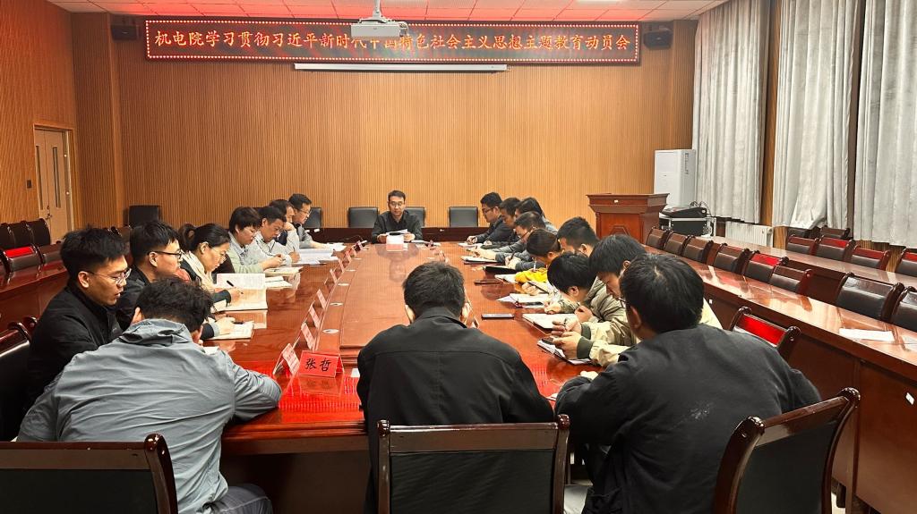 4月19日,机械电气化工程学院学习贯彻习近平新时代中国特色社会主义思想主题教育动员会在新校区(东扩区)一期D108会议室召开。学院党委委员、纪委委员、全体副科级以上干部和党支部书记参加会议。会议由党委书记王旭峰主持。