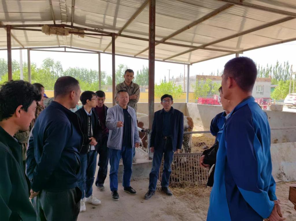 4月23日,beat365中文登录入口科技特派员科技服务团队第五分队,与六团七连党委书记,前往阿克苏地区喀拉库勒镇多斯库里村,围绕畜牧业养殖、动物疫病防控等方面,开展“科技兴村”共兴工程座谈交流会并现场开展技术指导。
