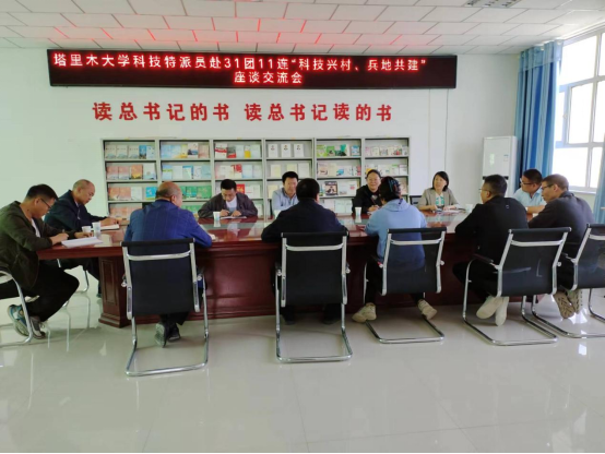 在31团11连,连队召集了职工代表、兵地共建结对村两委和“访惠聚”工作队成员进行座谈交流,团队详细了解了连队和结对村的发展现状、种植情况以及在土地流转过程中存在的问题,明确了科技帮扶需求。座谈会结束后团队先后到小麦、棉花、大葱、采摘园等种植区,深入田间地头进行了实地调研,进一步了解了作物种植和产业发展情况。