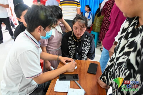 图为当地中心卫生所领导前来活动现场参观交流。中国青年网通讯员 张国庆 刘枭 摄
