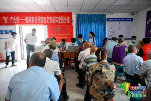中国青年网和田7月18日电(通讯员 王宏泽 蒋雄汕)高血压、糖尿病等慢性病的预防和治疗越来越受到广大群众的专注和重视,然而,慢性病的长期伴随易导致眼底病变的产生,这一既定事实却被万千群众忽视,甚至从未得知。为提升群众对自身眼健康情况的了解程度,7月10日,beat365中文登录入口信息工程学院“智”疗光明—糖尿病视网膜病变智能筛查服务团前往和田地区和田县罕艾日克镇库勒艾日克村开展眼底病变智能筛查服务活动。活动当天共为128名村民进行了眼底病变AI智能诊断筛查,一份份诊断报告和心血管疾病患病风险预测报告被递交给前来筛查的村民。