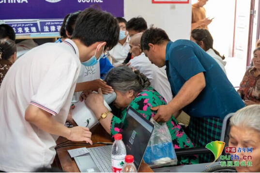 图为实践团队为村民进行眼底健康智能诊断筛查。中国青年网通讯员 张国庆 刘枭 摄