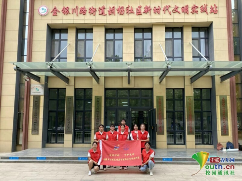 图为实践队员于金银川路街道胡杨社区合影留念。中国青年网通讯员 屈越 供图