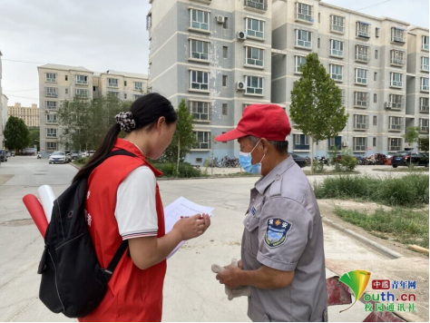 图为实践队员向社区居民发放宣传单的场景。中国青年网通讯员 屈越 供图