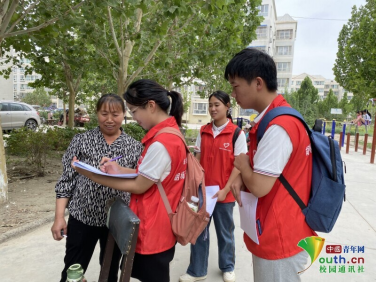 图为实践队员做调查问卷的画面。中国青年网通讯员 屈越 供图
