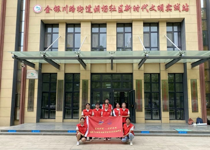 图为实践队员于金银川路街道胡杨社区合影留念。