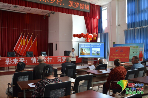图为团队成员用PPT为村民讲解科学用眼相关知识。中国青年网通讯员 屈越 供图
