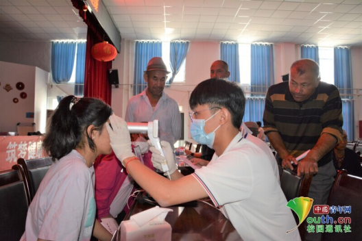 图为团队成员对村民眼底进行拍照取样。中国青年网通讯员 屈越 供图