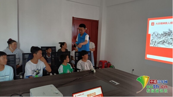 图为团队成员在连队为青少年以及老年人宣讲场景。中国青年网通讯员李珍明摄