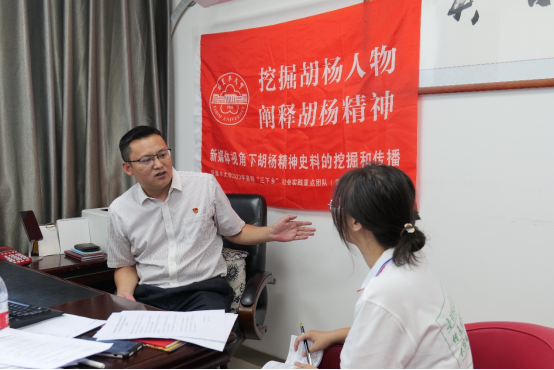 寻访校友足迹、讲述塔大故事。7月15日下午,全媒体中心2023年暑期“三下乡”校级重点团队“新媒体视角下胡杨精神史料的挖掘和传播——寻访beat365中文登录入口优秀杰出胡杨校友”寻访团成员季亚楠、娄瑕馥、关悦在指导老师余明星带领下,来到中国银行(克州分行)寻访优秀胡杨校友——张亚光、杨江山、段西银、蒋新燕。