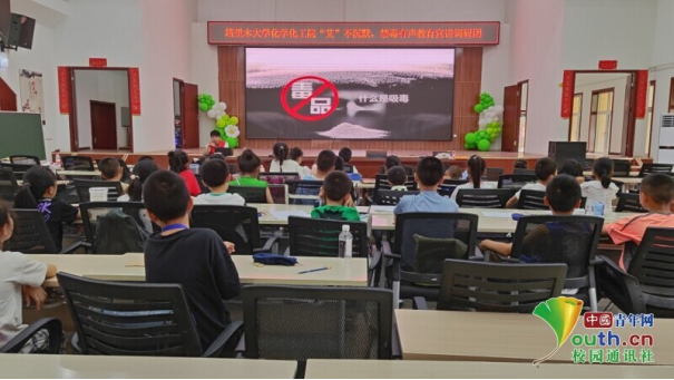 图为团队在阿拉尔市金银川路胡杨社区面向社区青少年开展的禁毒主题讲座。中国青年网通讯员刘思佳供图