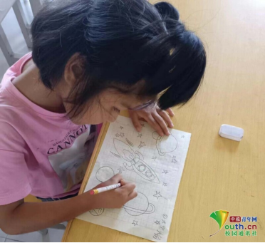 图为三年级小学生画的太空火箭。中国青年网通讯员王金霞摄