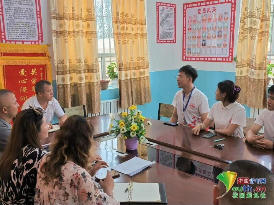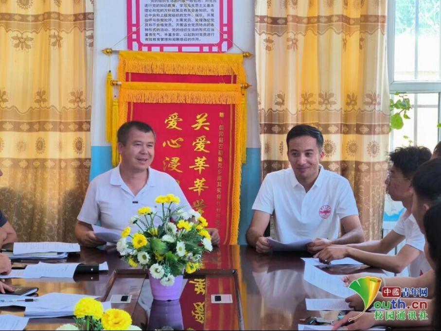 图为团队成员和村委会领导进行自我介绍。中国青年网通讯员王新宇摄