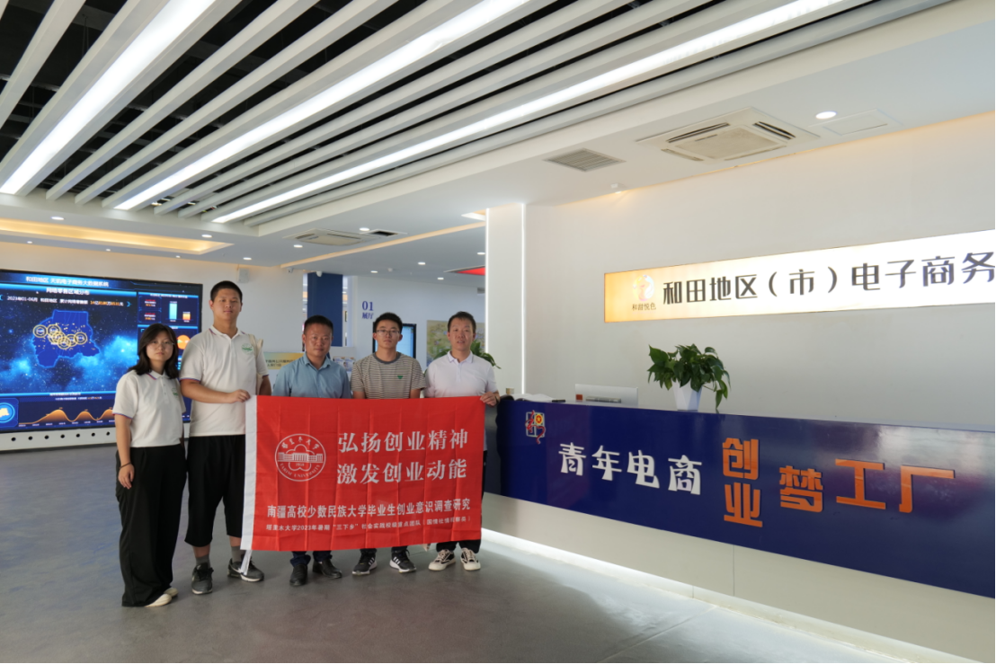 寻访创业先锋,挖掘创业故事。7月13日,全媒体中心2023年校级“三下乡”重点团队“南疆高校少数民族大学毕业生创业意识调查研究(国情社情观察类)”指导教师余明星带领团队成员季亚楠、娄瑕馥、关悦,继续在和田地区(市)电商公共服务中心参观学习。