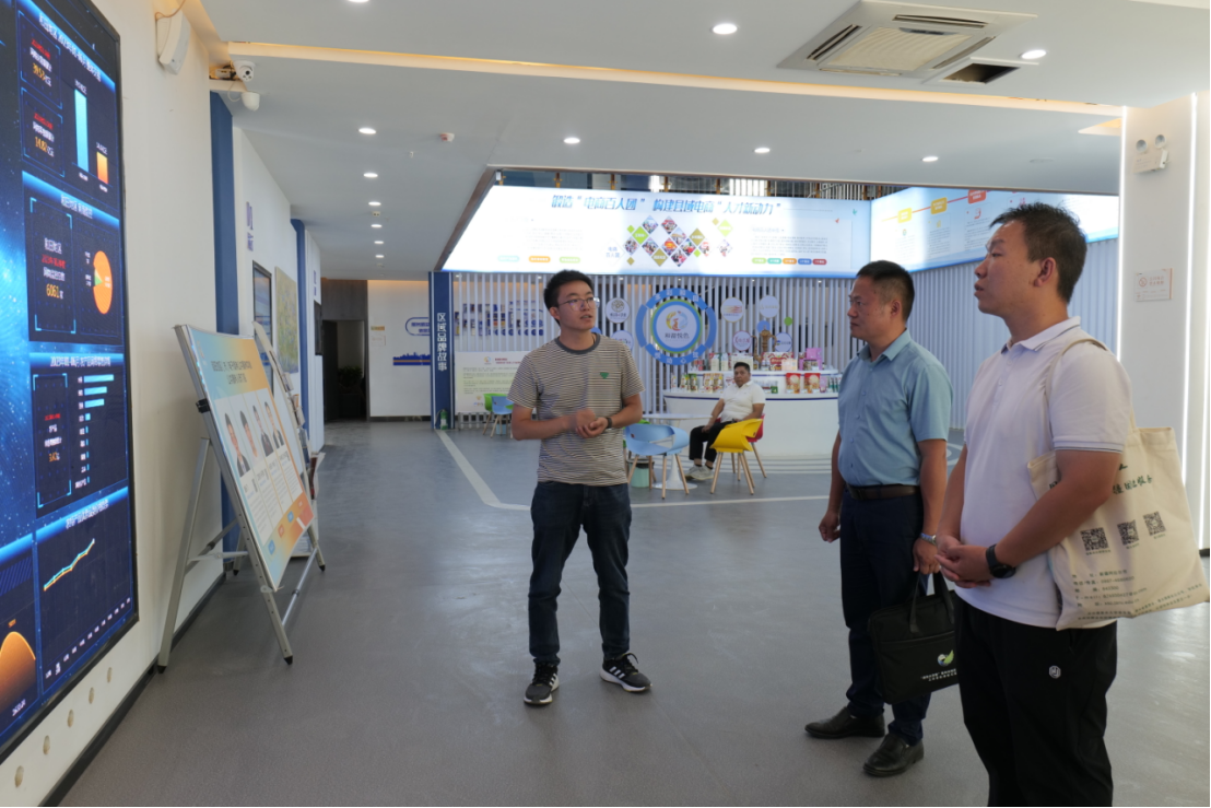 在和田地区团委相关负责人陪同下,寻访团来到和田地区电商产业园。先后参观了电商公共服务中心数字化选品区、电商汇报厅、数字乡村运营中心、重创空间和网红直播基地,对品牌设计、企业孵化、店铺装修、电商培训、产品拍摄等相关内容进行深入学习了解。