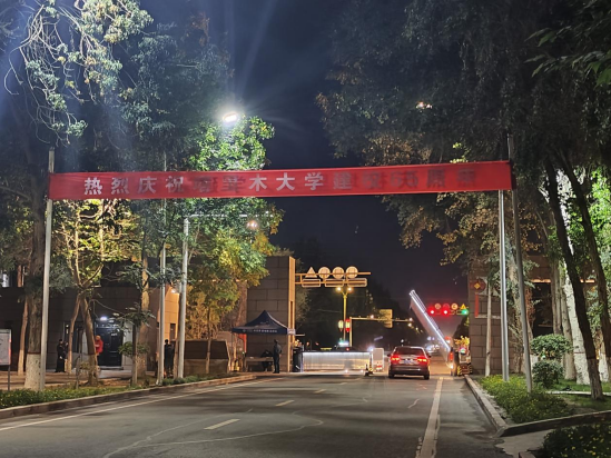 学校各处已扬起了热烈的校庆氛围